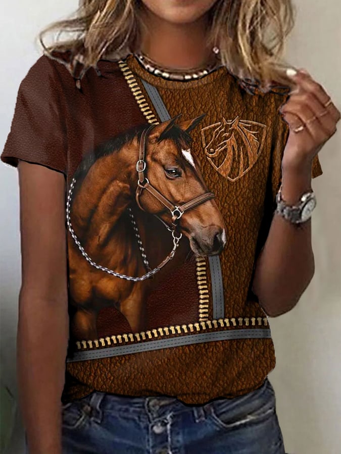 Women's Retro Horse Print Horse Lovers Casual Tee