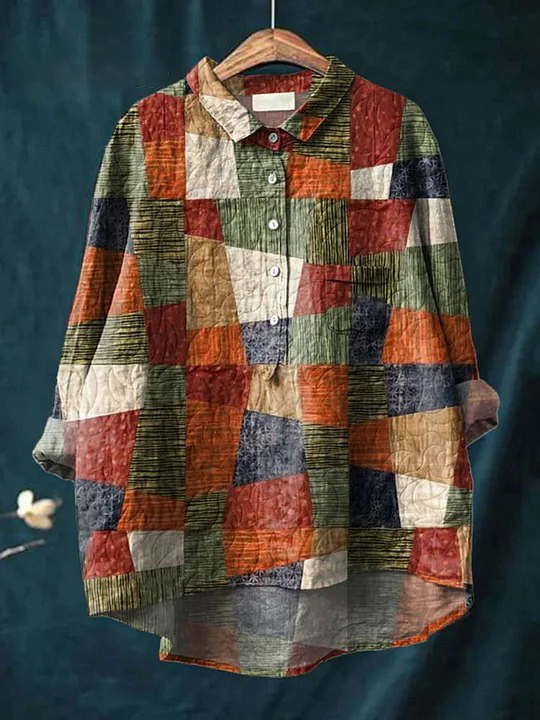 Women's Retro Patchwork Print Cotton And Linen Shirt