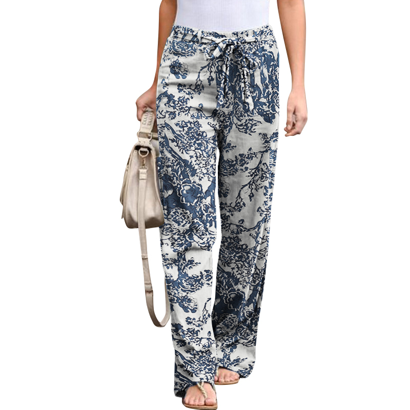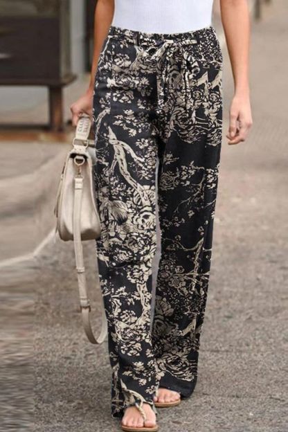 Women's Retro Print Loose Casual Elastic Waist Drawstring Trousers
