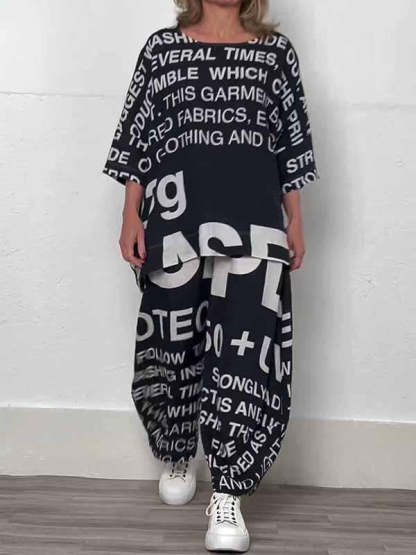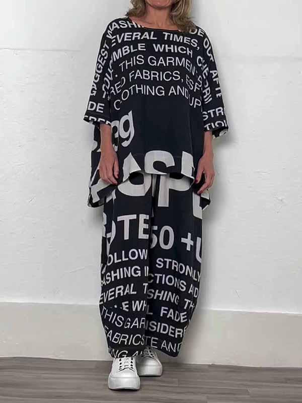 Women's Round Neck Letter Printed Two-piece Suit