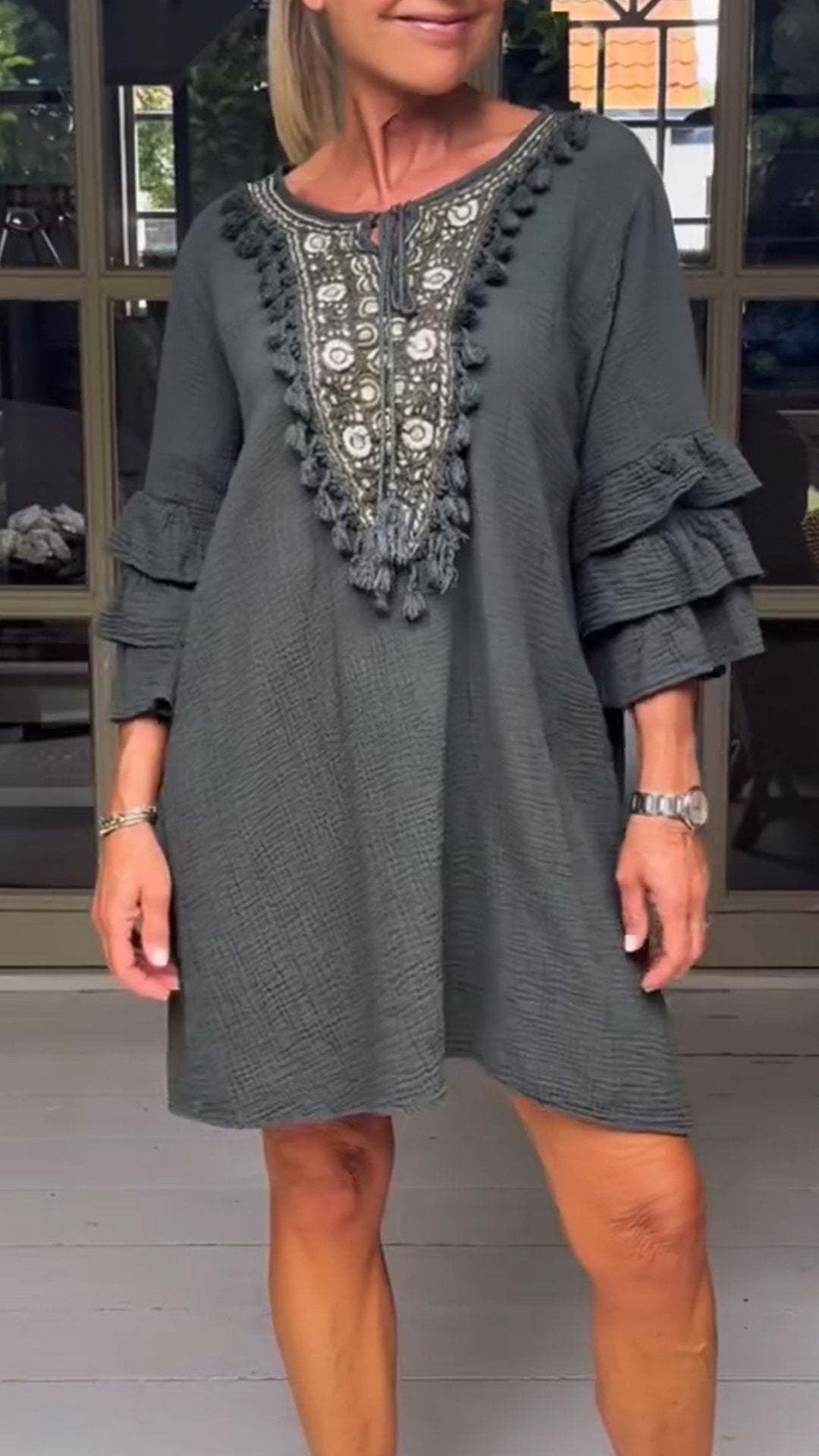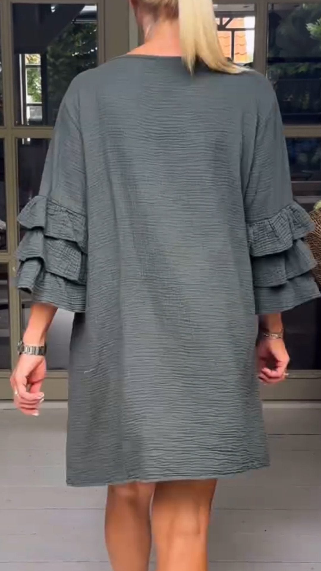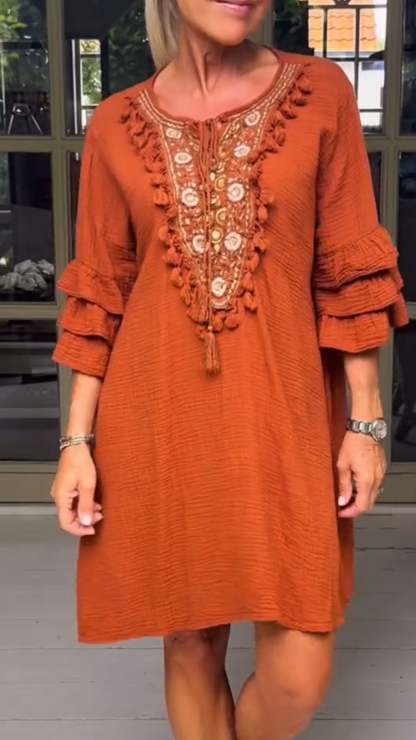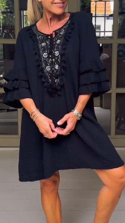 Women's Round Neck Mid-length Sleeve Casual Dress