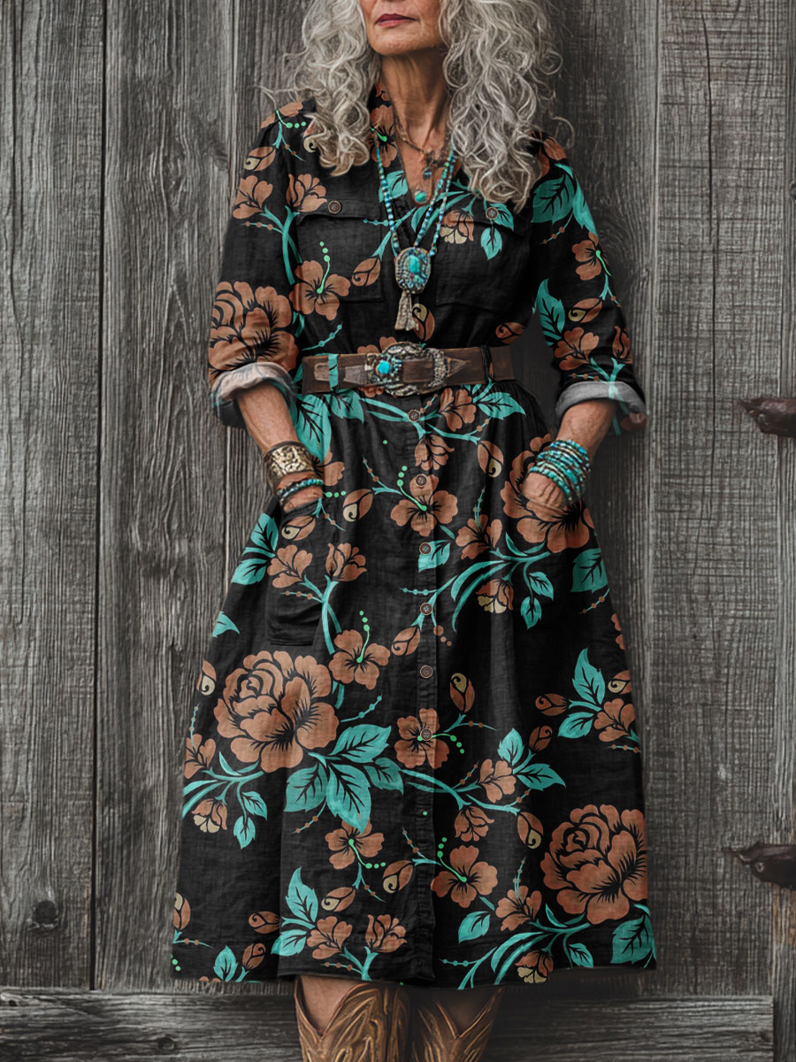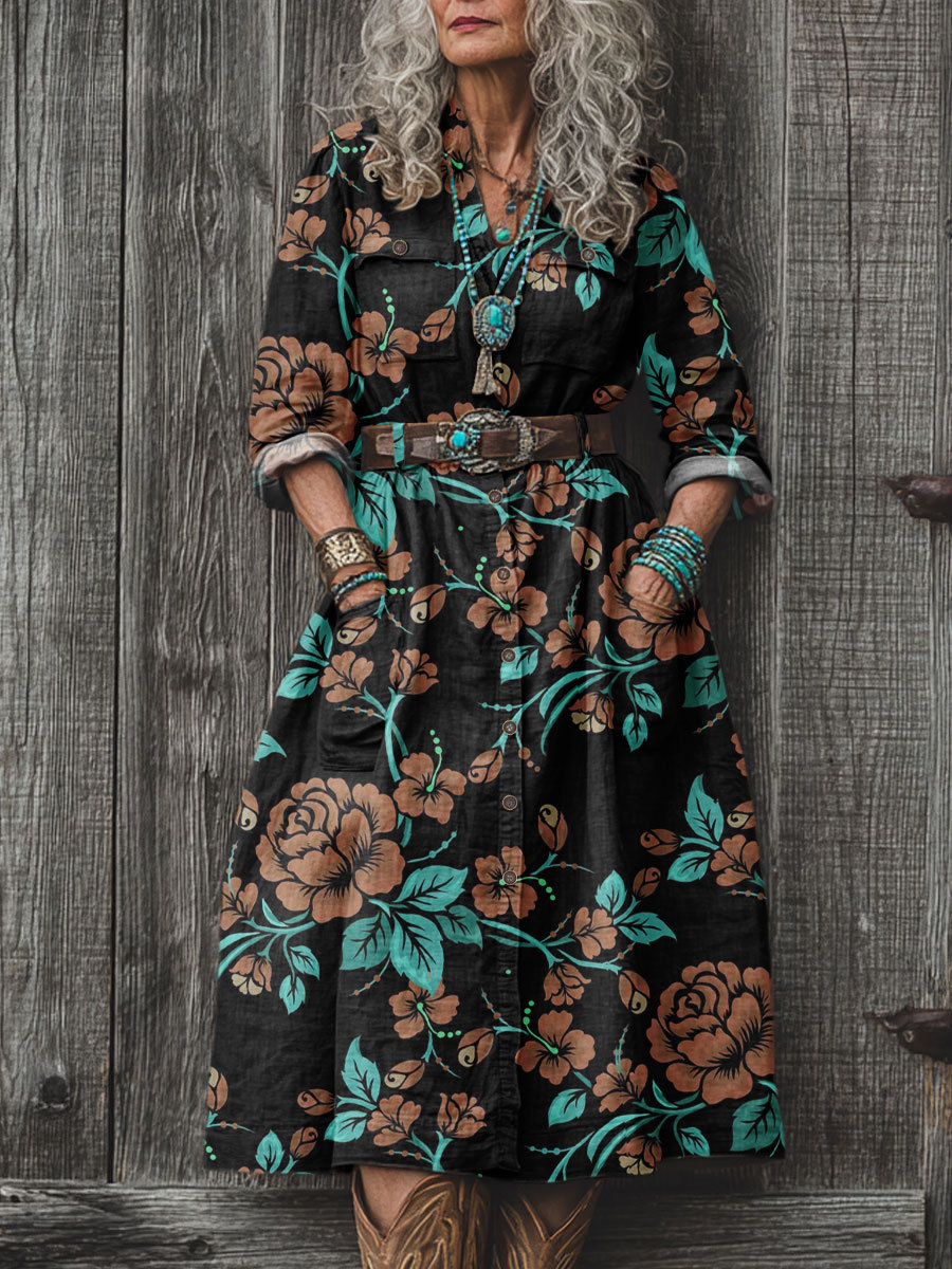 Women's Simple Floral Art Pattern Print Dress