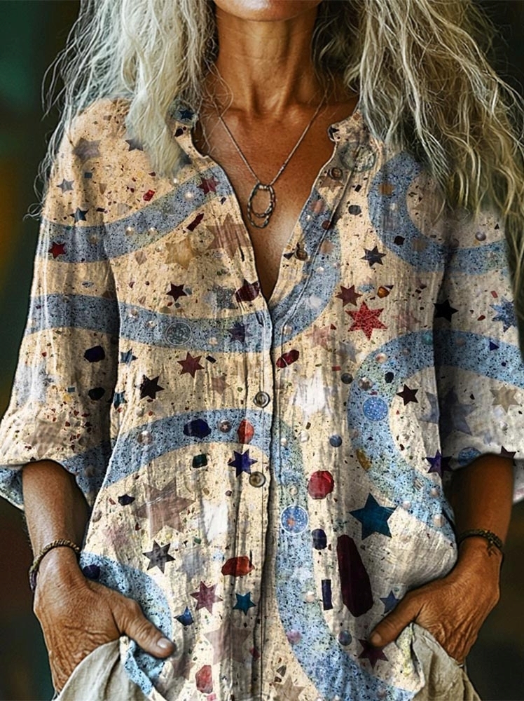 Women's Star Art Patterns Print Casual Cotton And Linen Shirt