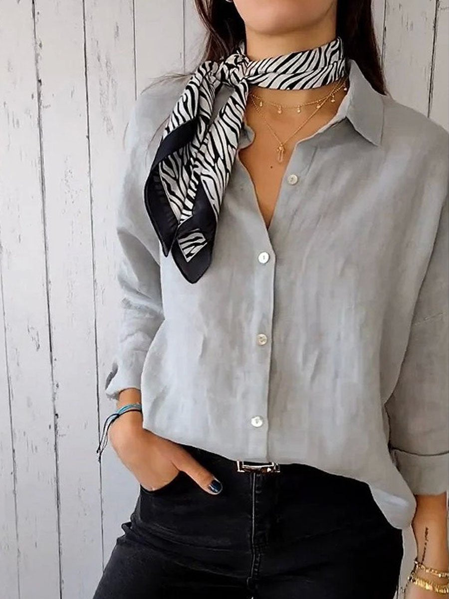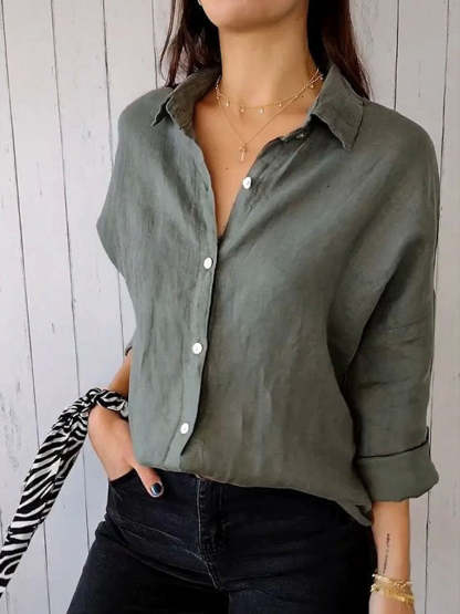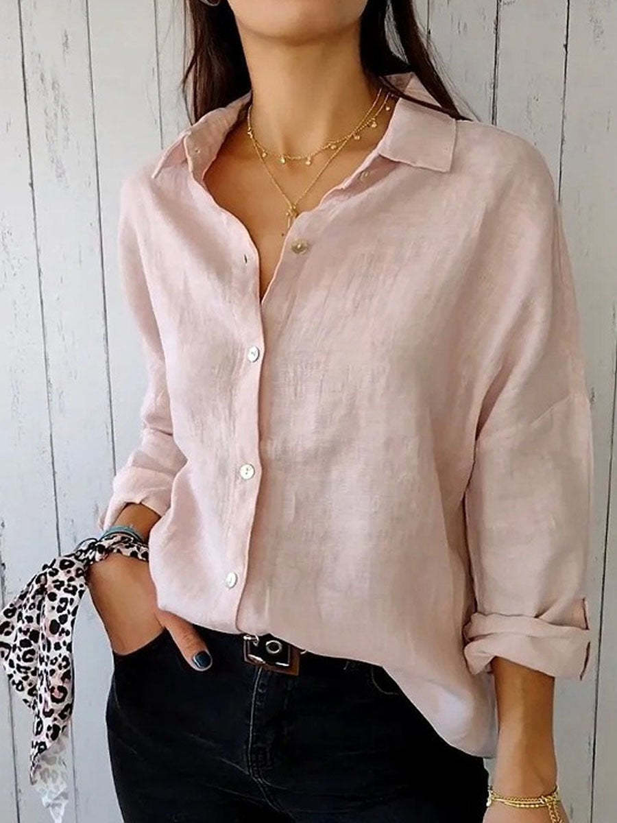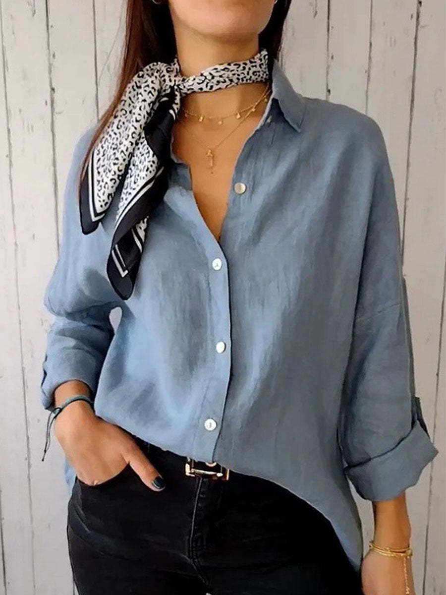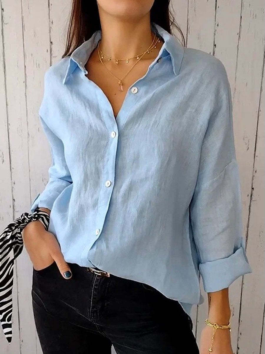Women's Stylish Lapel Fashion Solid Color Button Long Sleeve Casual Shirt