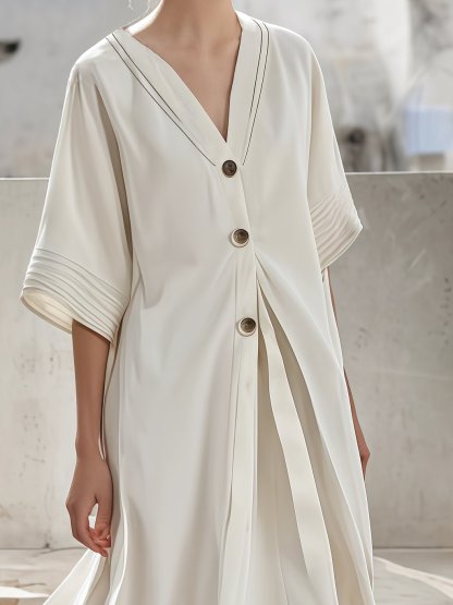 Women's Summer Cotton&Linen V-Neck Pleated Dress