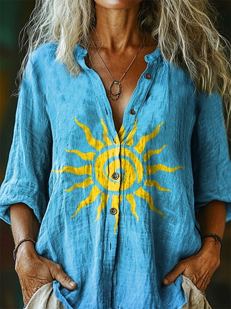 Women's Sunburst Pattern Art Print Linen Cotton Casual Shirt