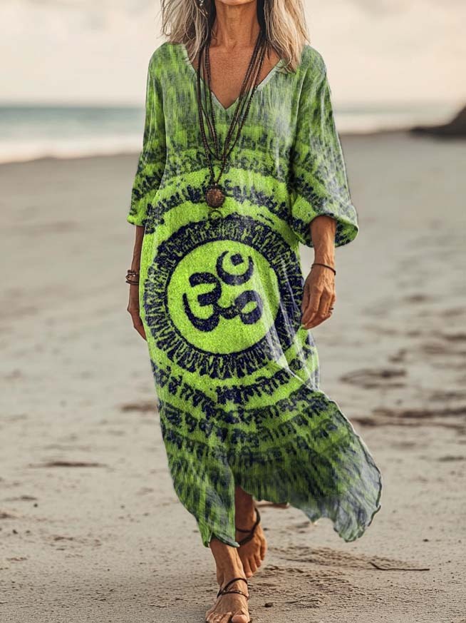 Women's Tattoo Pattern Art Print Pocket Cotton Dress