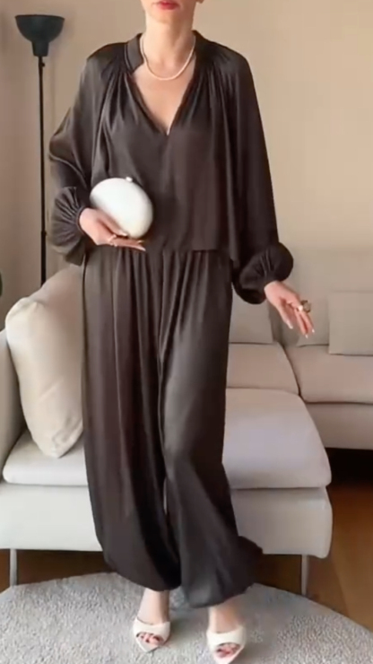 Women's V-Neck Satin Loose-Fitting Elegant Suit