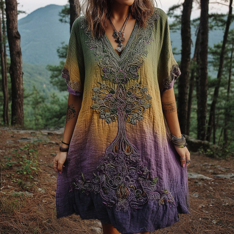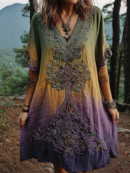 Women's Viking Celtic Knot Gradient Art Linen Short Mini Dress