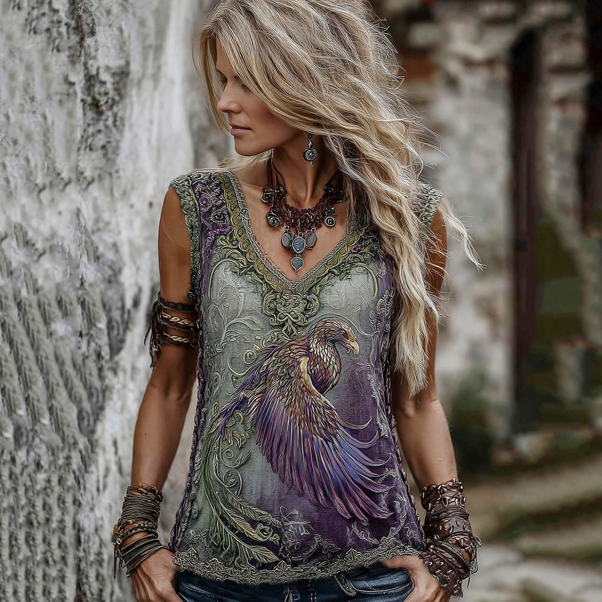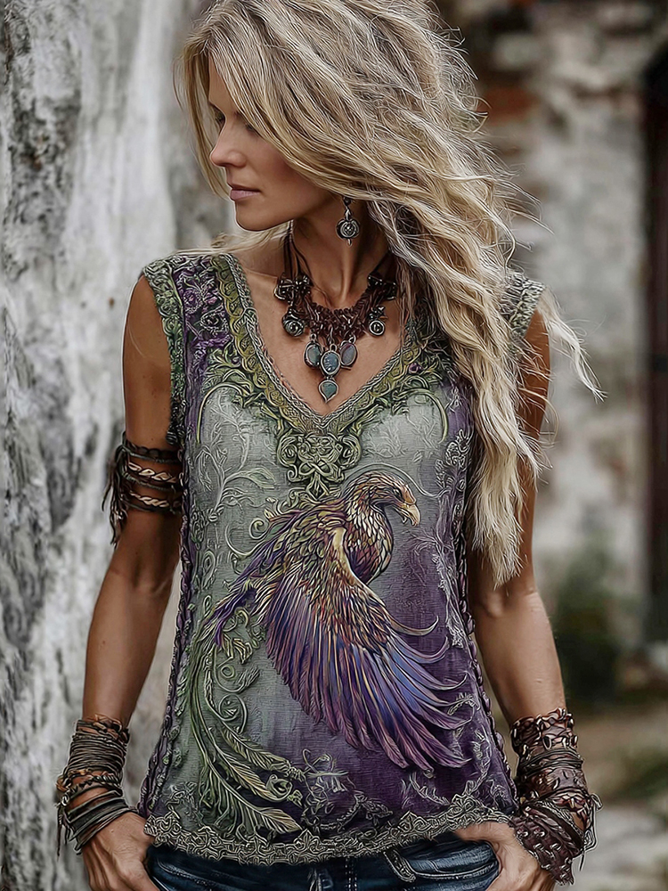 Women's Viking Celtic Phoenix Totem Gradient Linen Tank Top