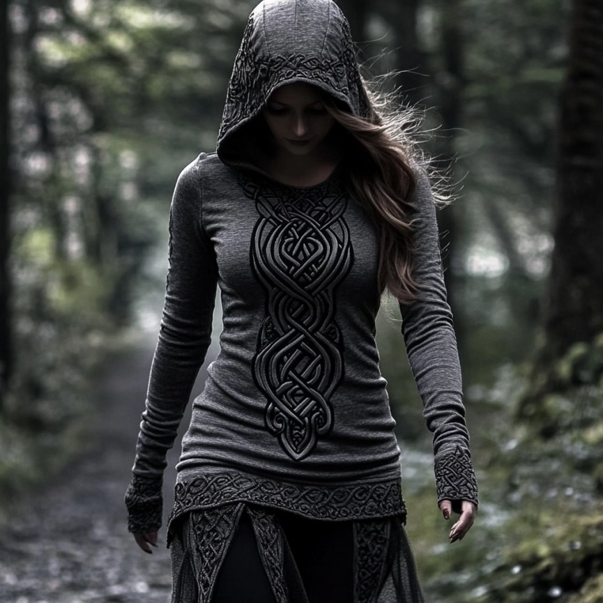 Women's Viking Jacquard Celtic Knot Art Hooded