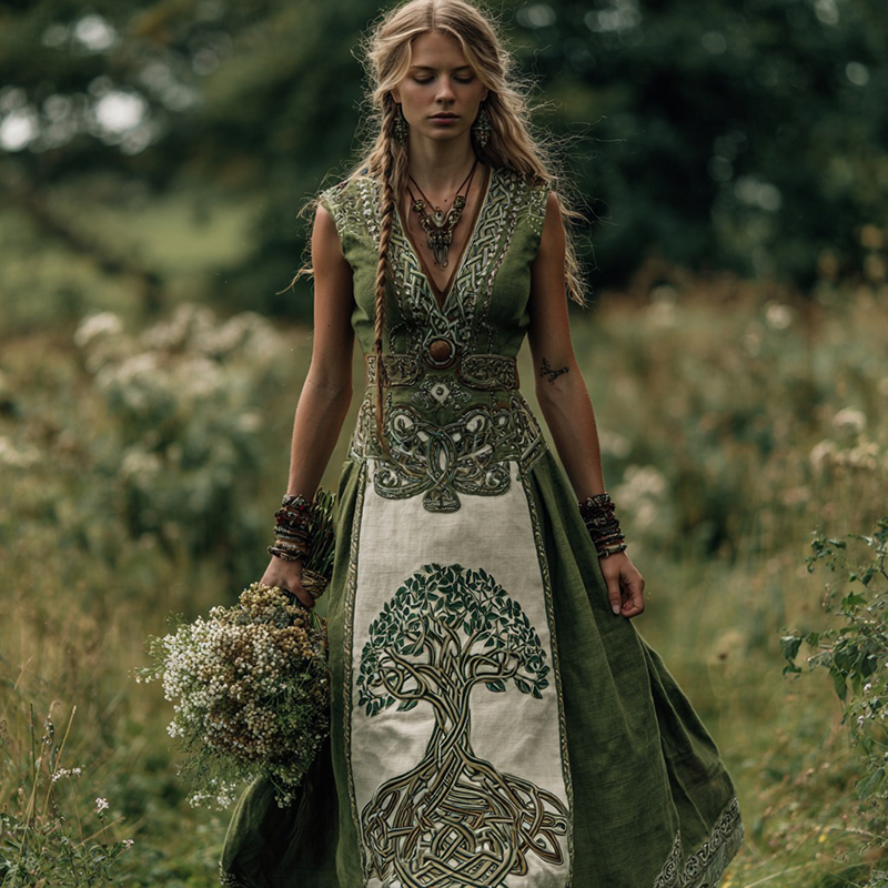 Women's Viking Life Of Tree Art V-neck Sleeveless Maxi Dress