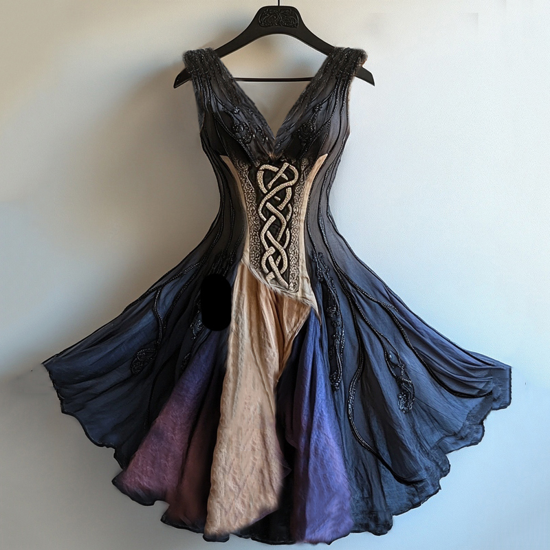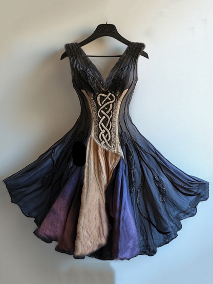 Women's Viking Nordic Celtic Knot Patchwork Linen Mini Dress