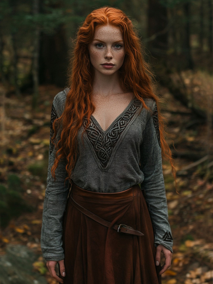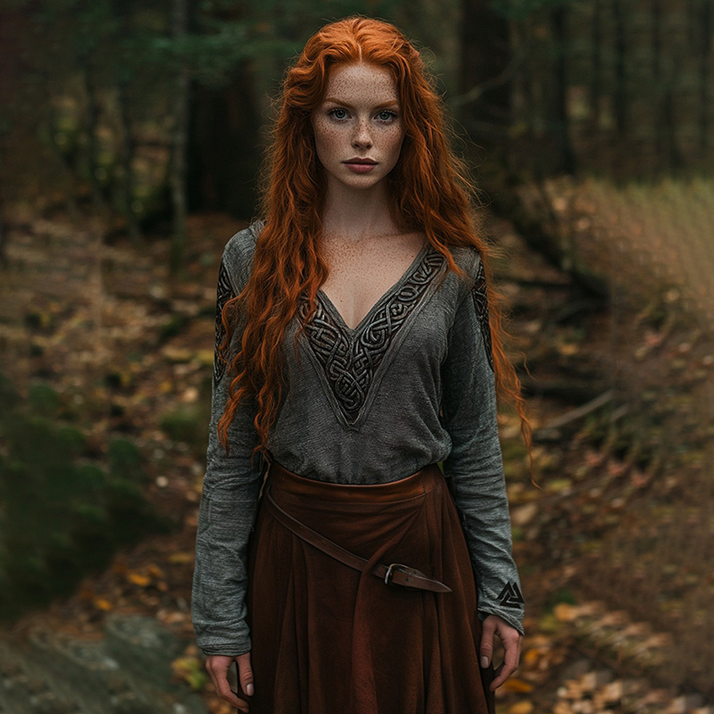 Women's Viking Style Celtic Knot Graphics Vintage Blend Linen V-neck Shirt