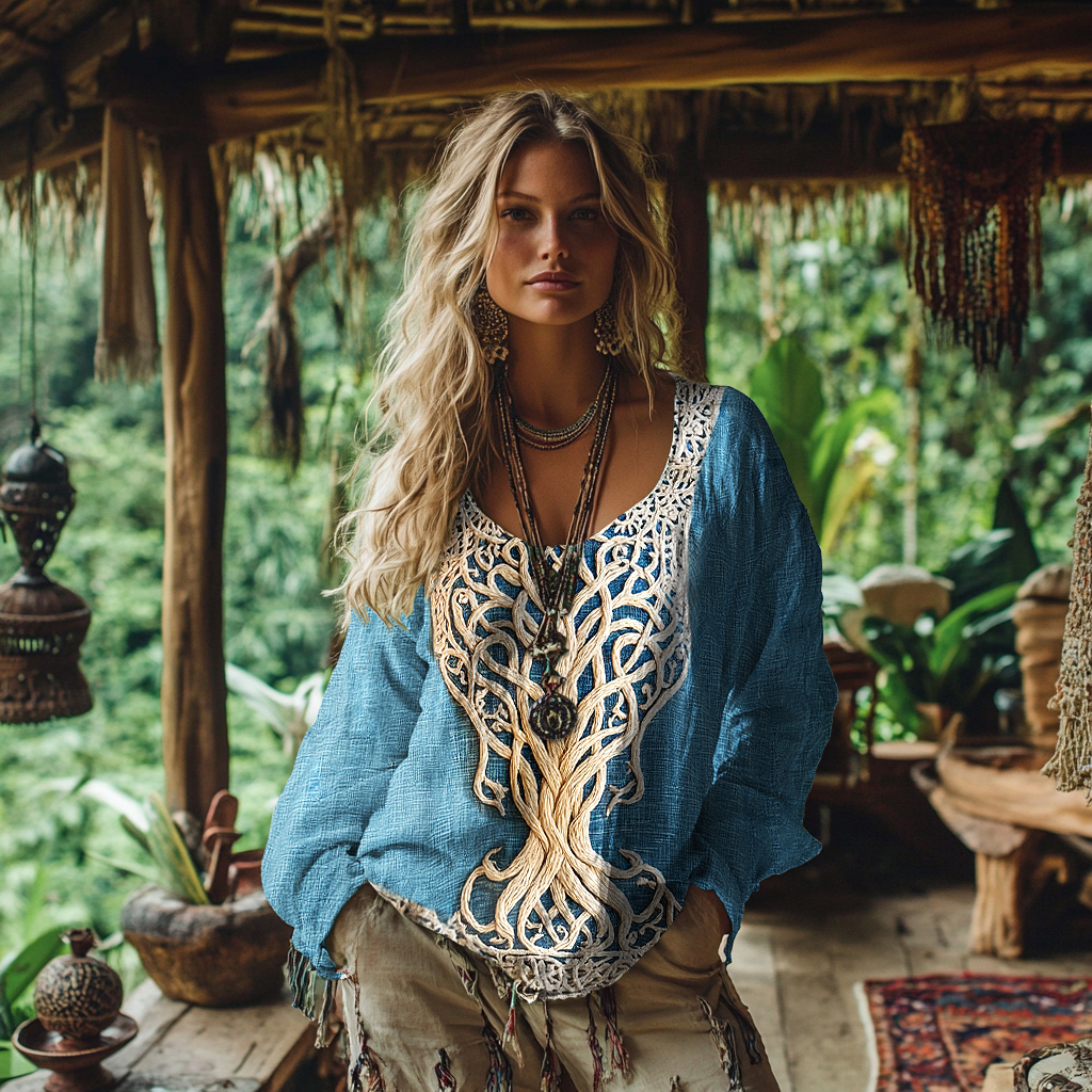 Women's Viking Tree Of Life Art Cotton And Linen T-shirt