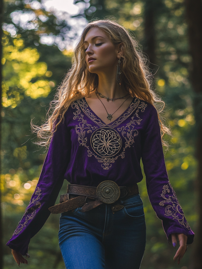 Women's Viking Tree Of Life Art Print V-neck Shirt