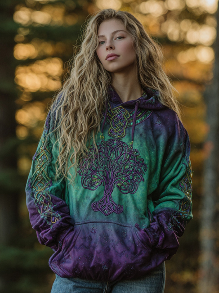 Women's Viking Tree Of Life Celtic Knot Art Gradient Comfort Hoodie