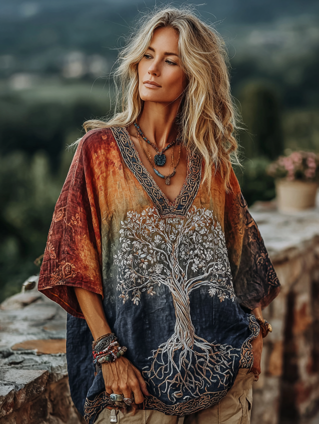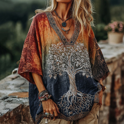 Women's Viking Tribal Tree Of Life In Rainbow Art Casual Shirt