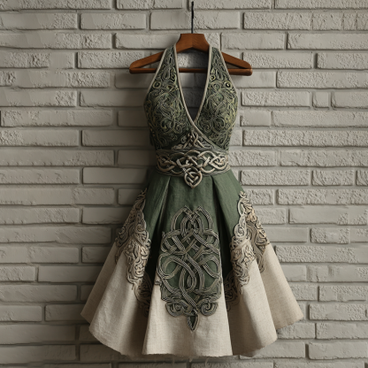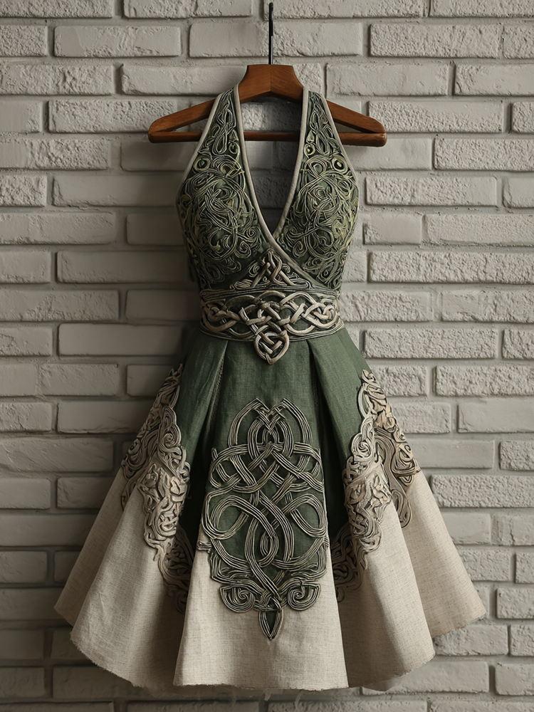 Women's Viking Vintage Celtic Art V-neck Midi Dress