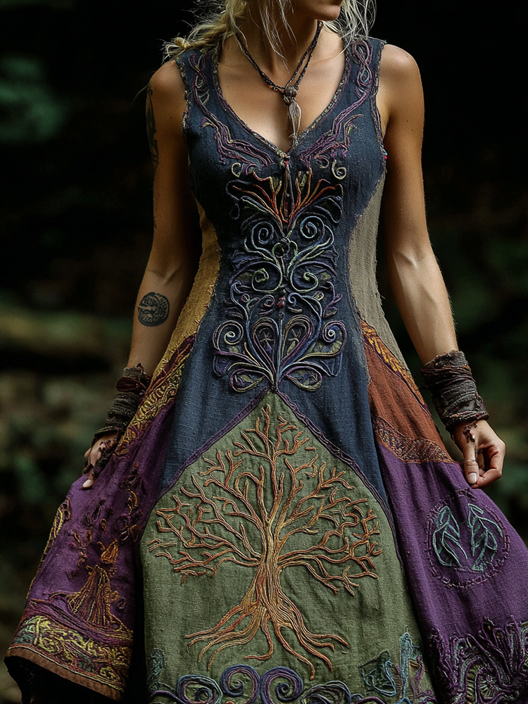 Women's Viking Vintage Celtic Gradient Patchwork Art Maxi Dress
