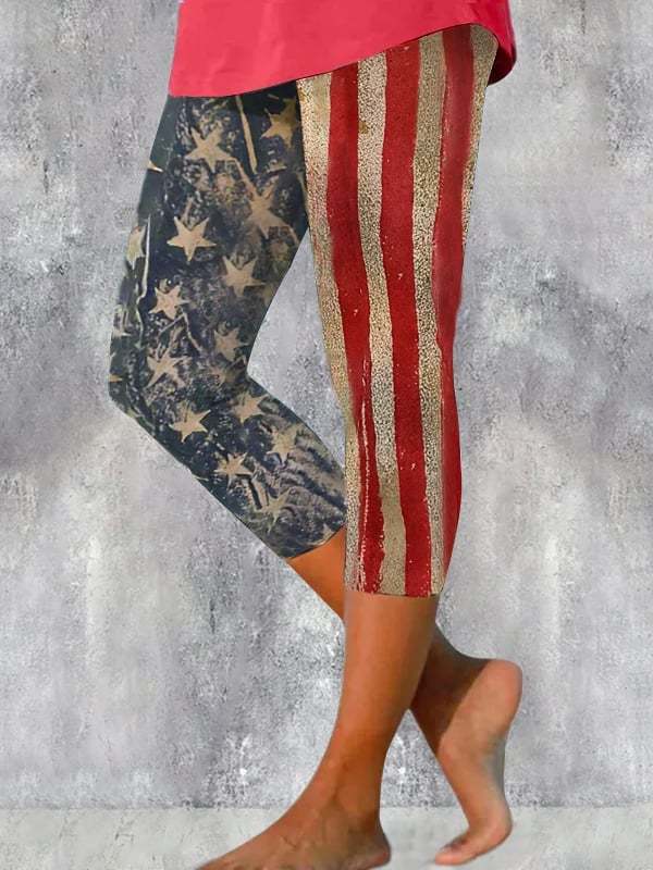 Women's Vintage American Flag Independence Day Print Leggings