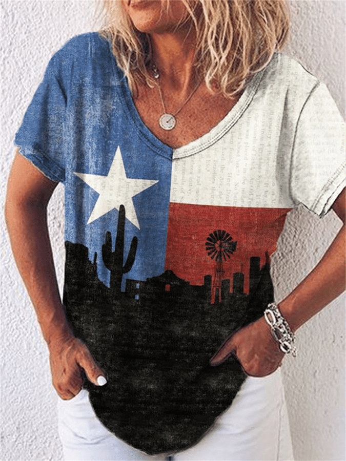 Women's Vintage American Flag Print Casual T-Shirt