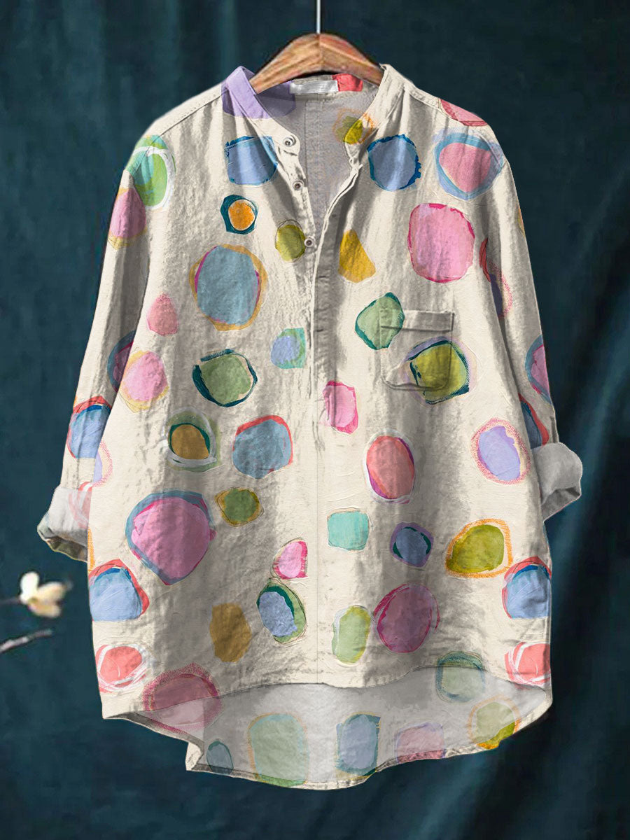 Women's Vintage Art Print Casual Long Sleeve Comfortable Cotton Shirt