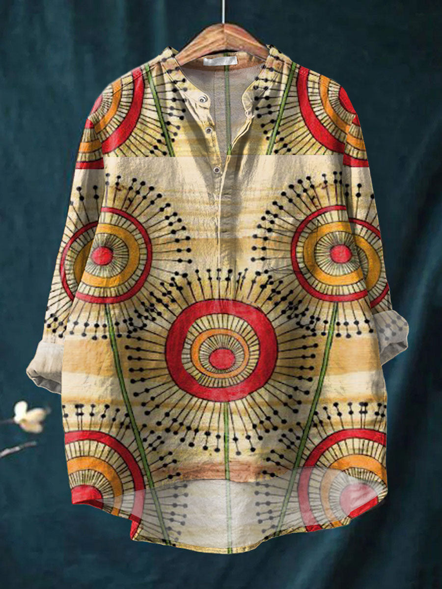 Women's Vintage Art Print Casual Long Sleeve Comfortable Cotton Shirt