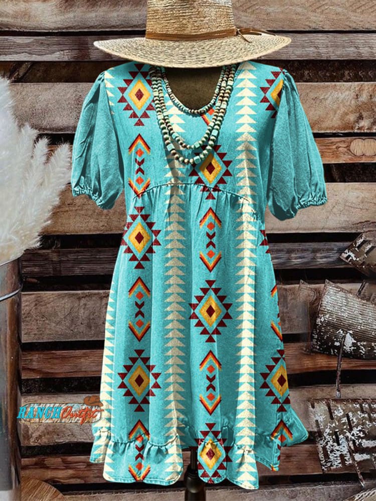 Women's Vintage Aztec Art Print Pocket Cotton Dress