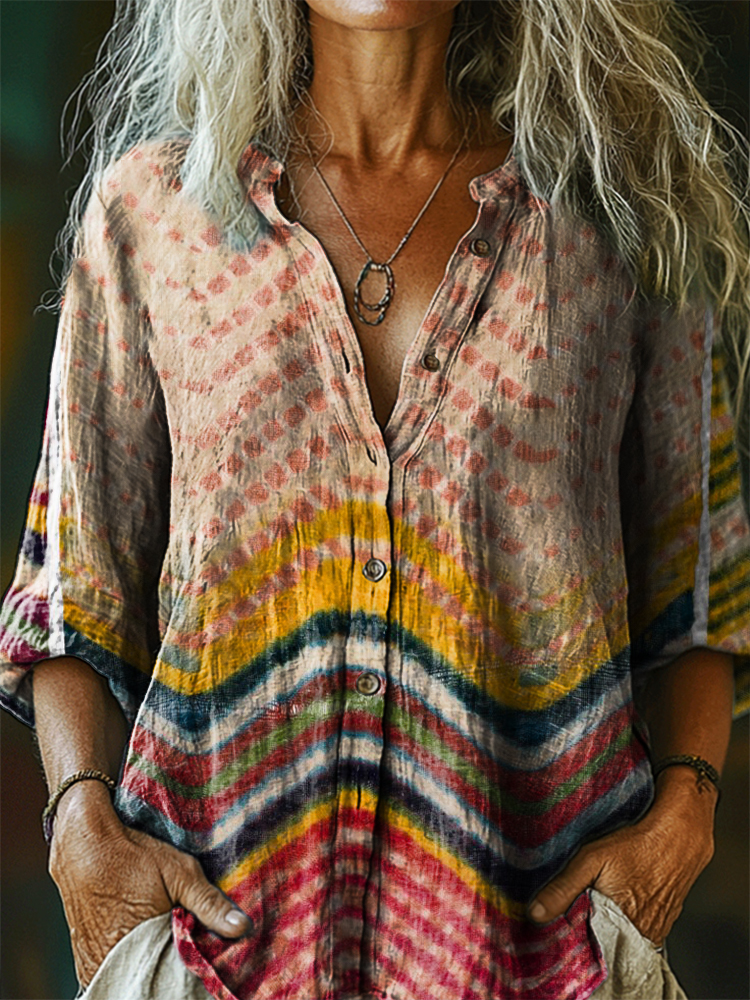 Women's Vintage Bohemian Pattern Art Print Casual Cotton Linen Shirt