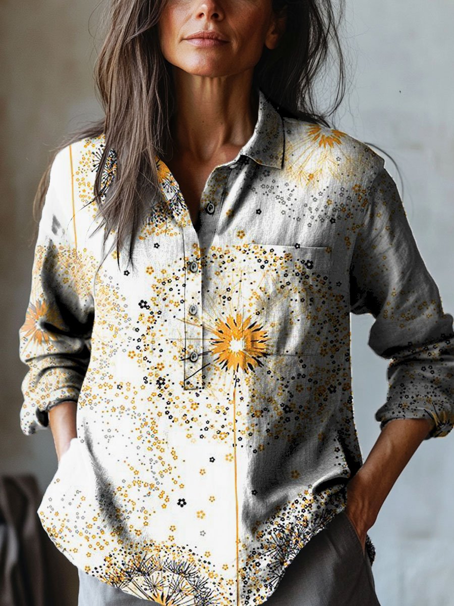 Women's Vintage Dandelion Art Print Casual Cotton And Linen Shirt