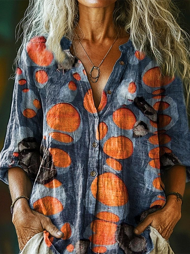 Women's Vintage Ethnic Patchwork Art Print Casual Cotton Linen Shirt
