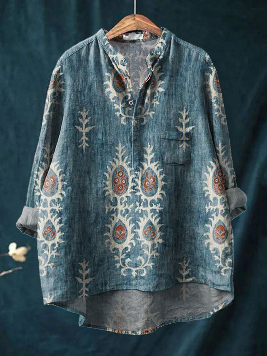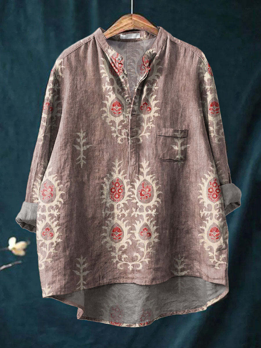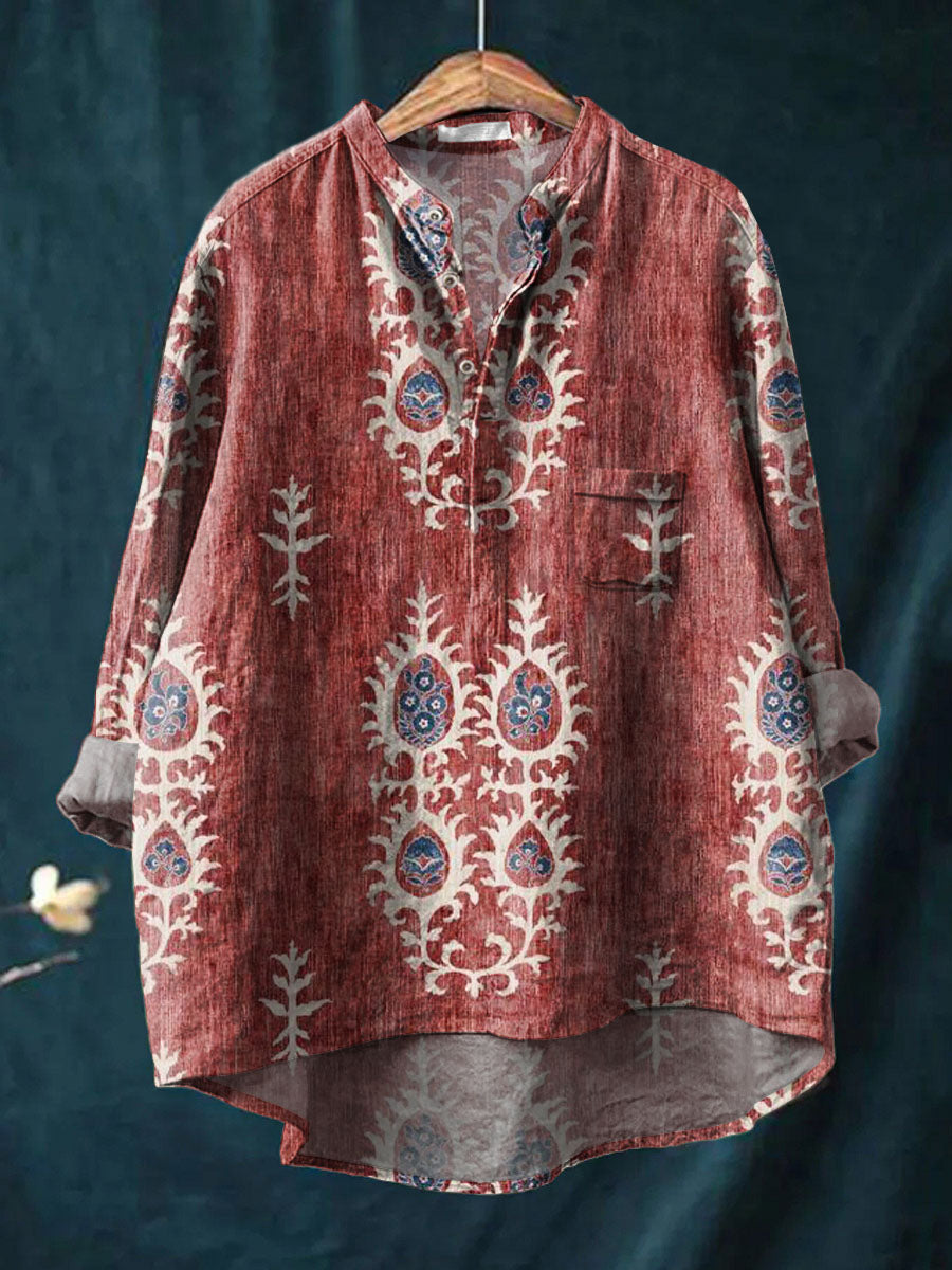Women's Vintage Ethnic Pattern Art Print Casual Long Sleeve Comfortable Cotton Shirt