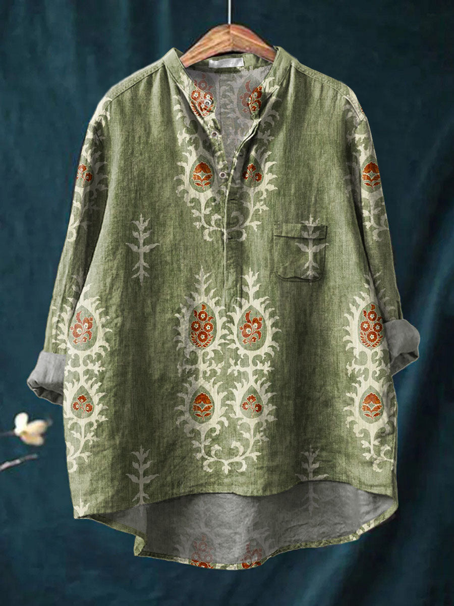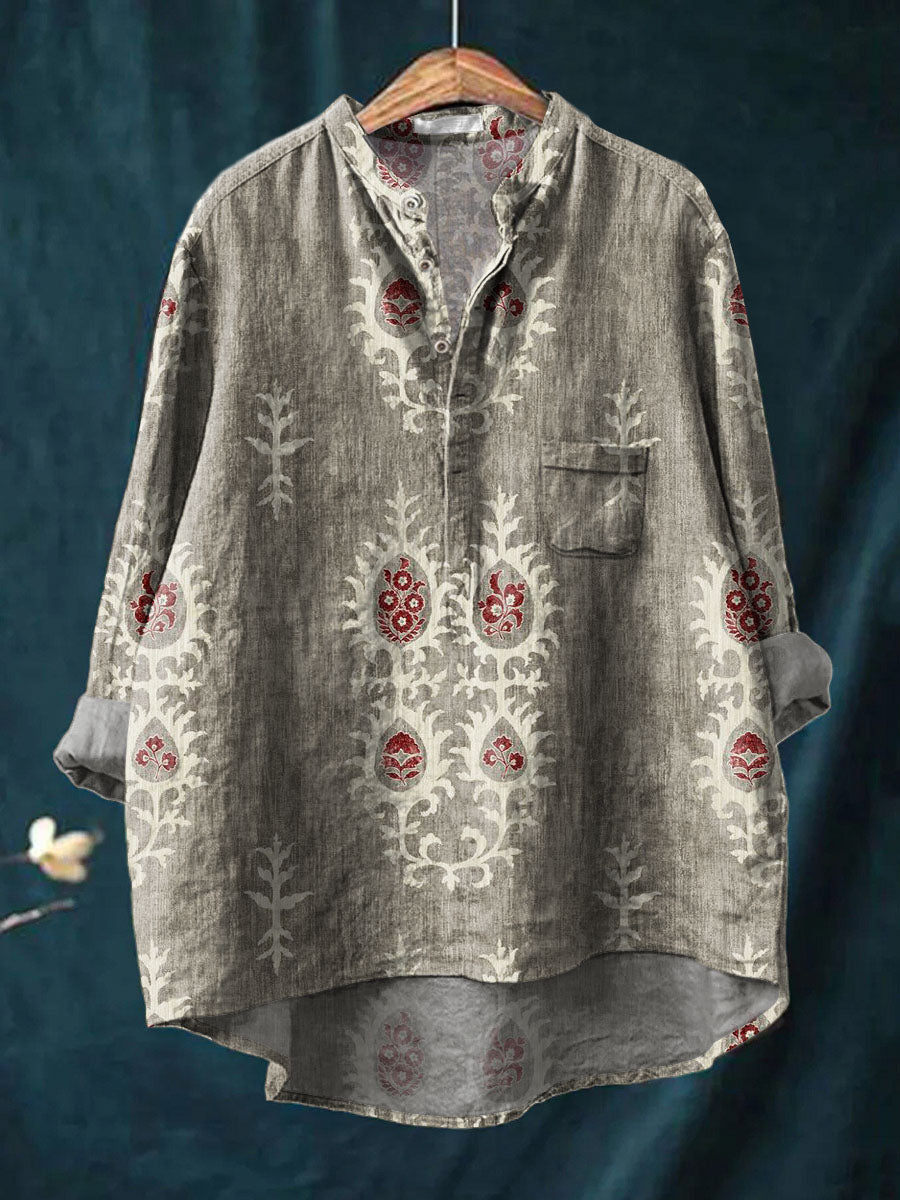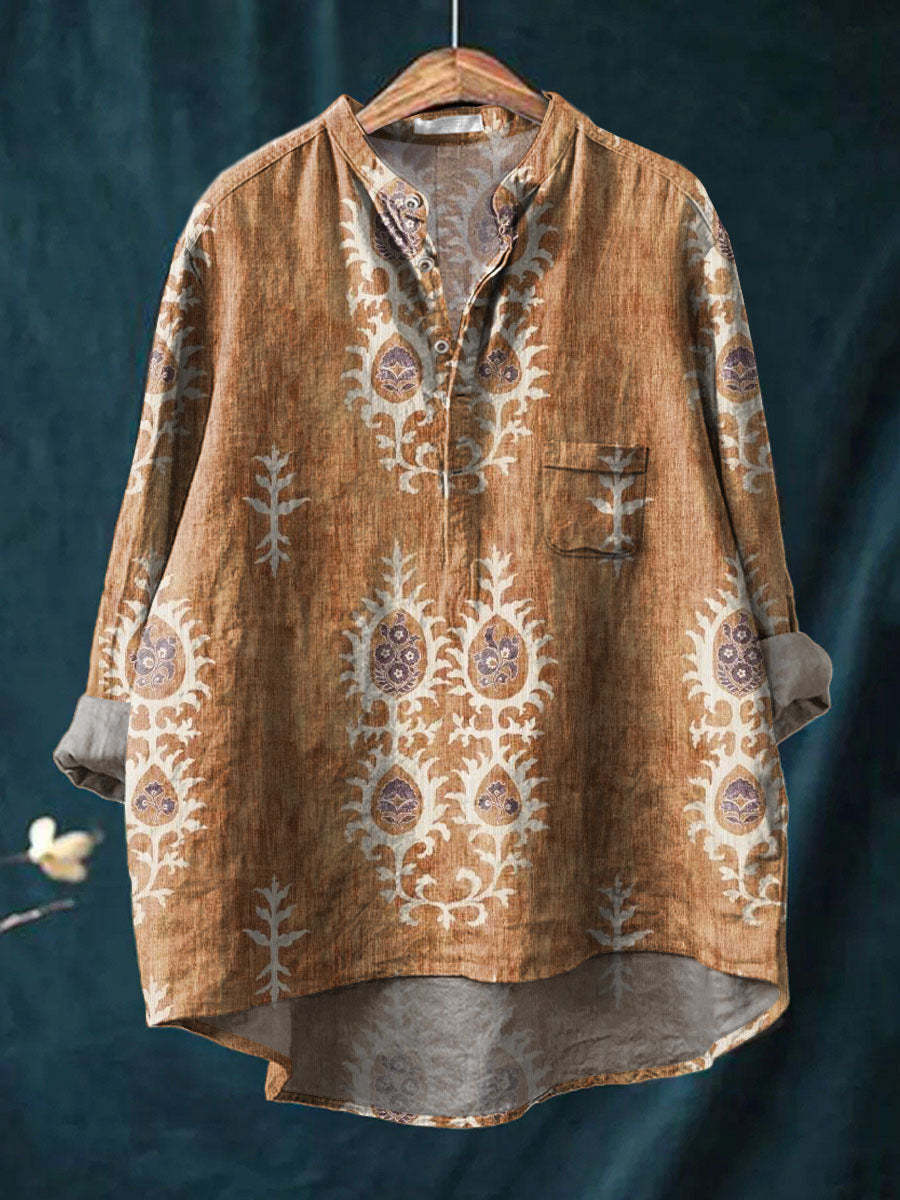 Women's Vintage Ethnic Pattern Art Print Casual Long Sleeve Comfortable Cotton Shirt
