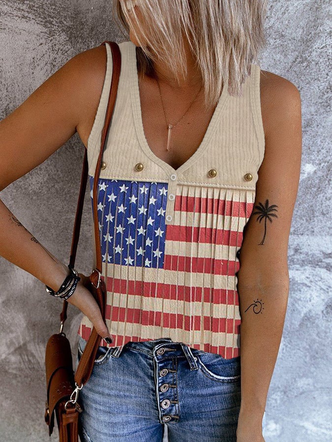 Women's Vintage Flag Independence Day Printed Casual Tank Top