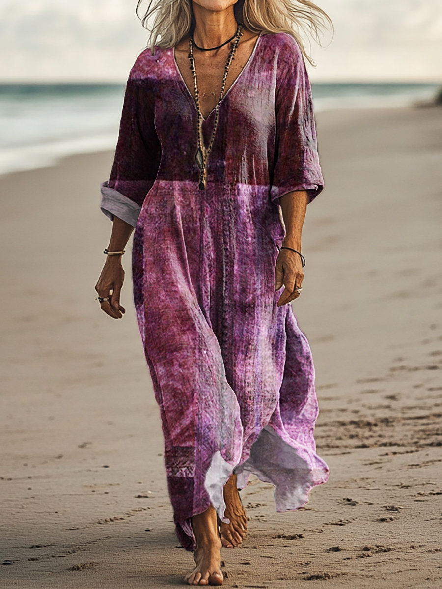 Women's Vintage Floral Art Print Pocket Cotton Dress