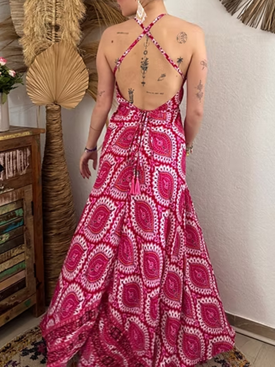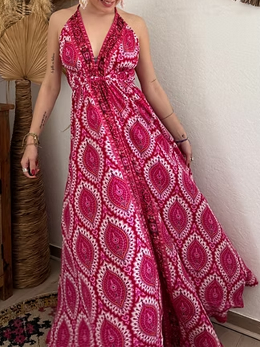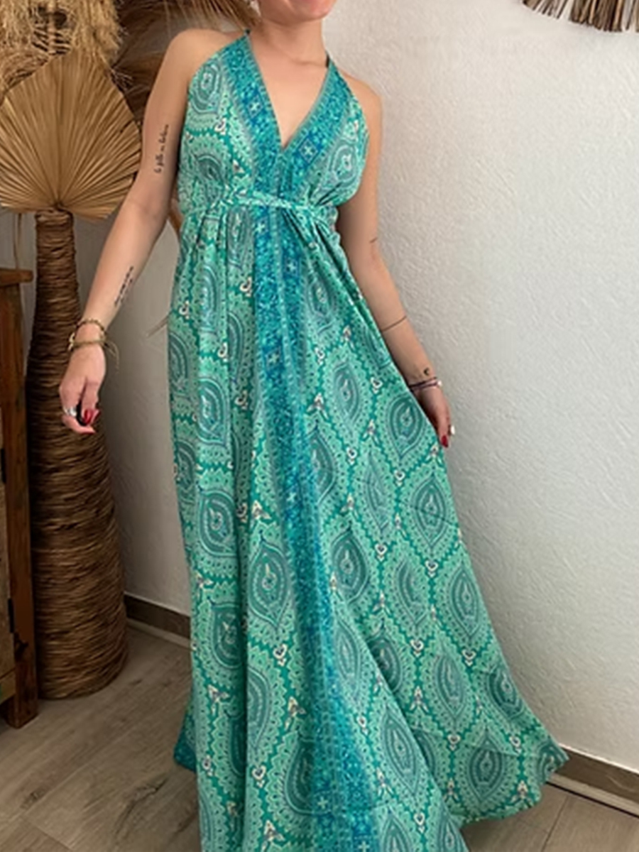 Women's Vintage Floral Print Cotton Maxi Dress