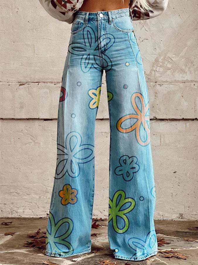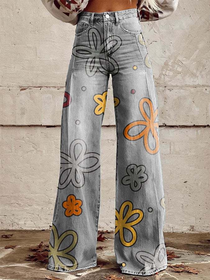 Women's Vintage Floral Print Wide Leg Pants
