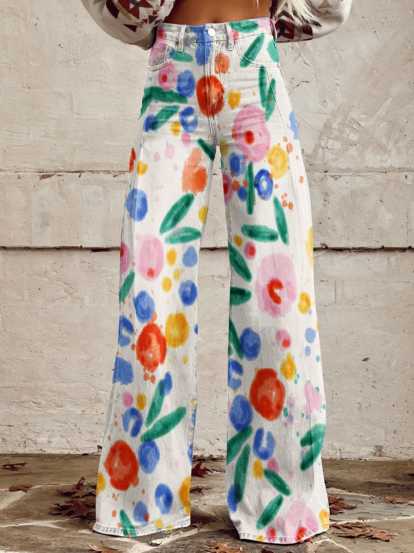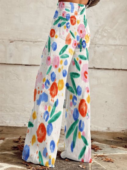 Women's Vintage Flower Print Casual Wide Leg Pants