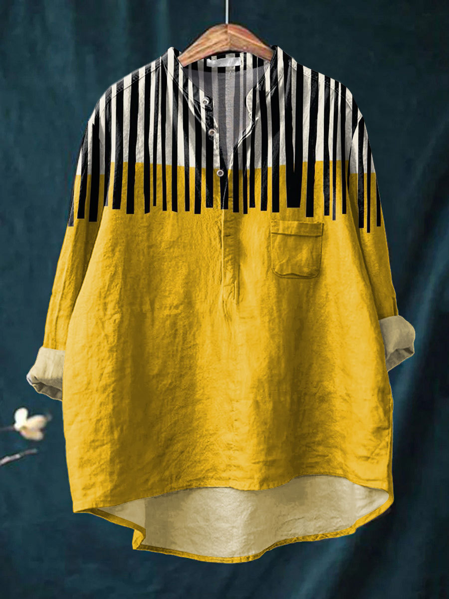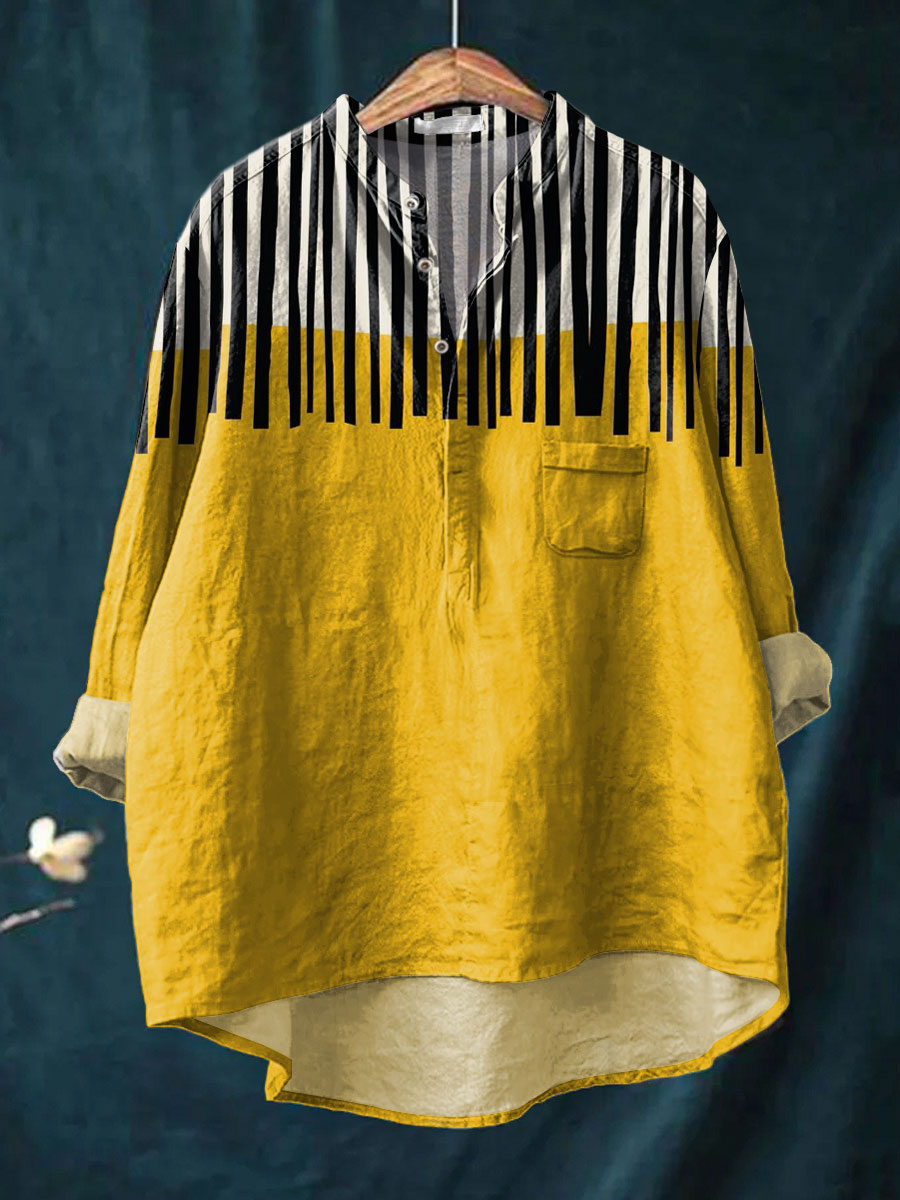 Women's Vintage Lines Art Print Casual Long Sleeve Comfortable Cotton Shirt