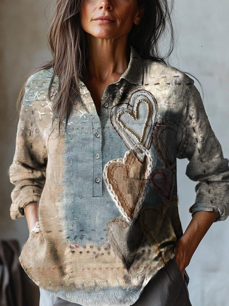 Women's Vintage Love Beach Art Print Casual Cotton And Linen Shirt