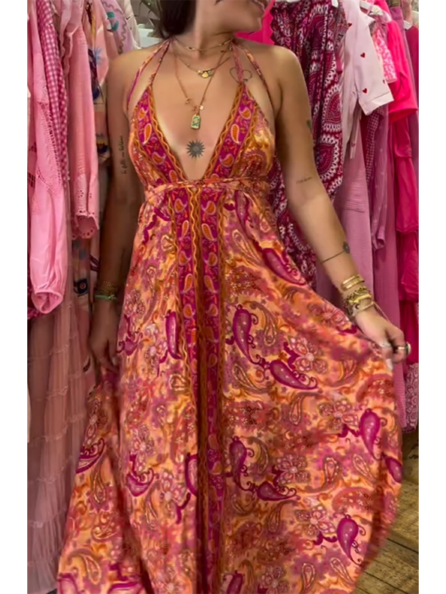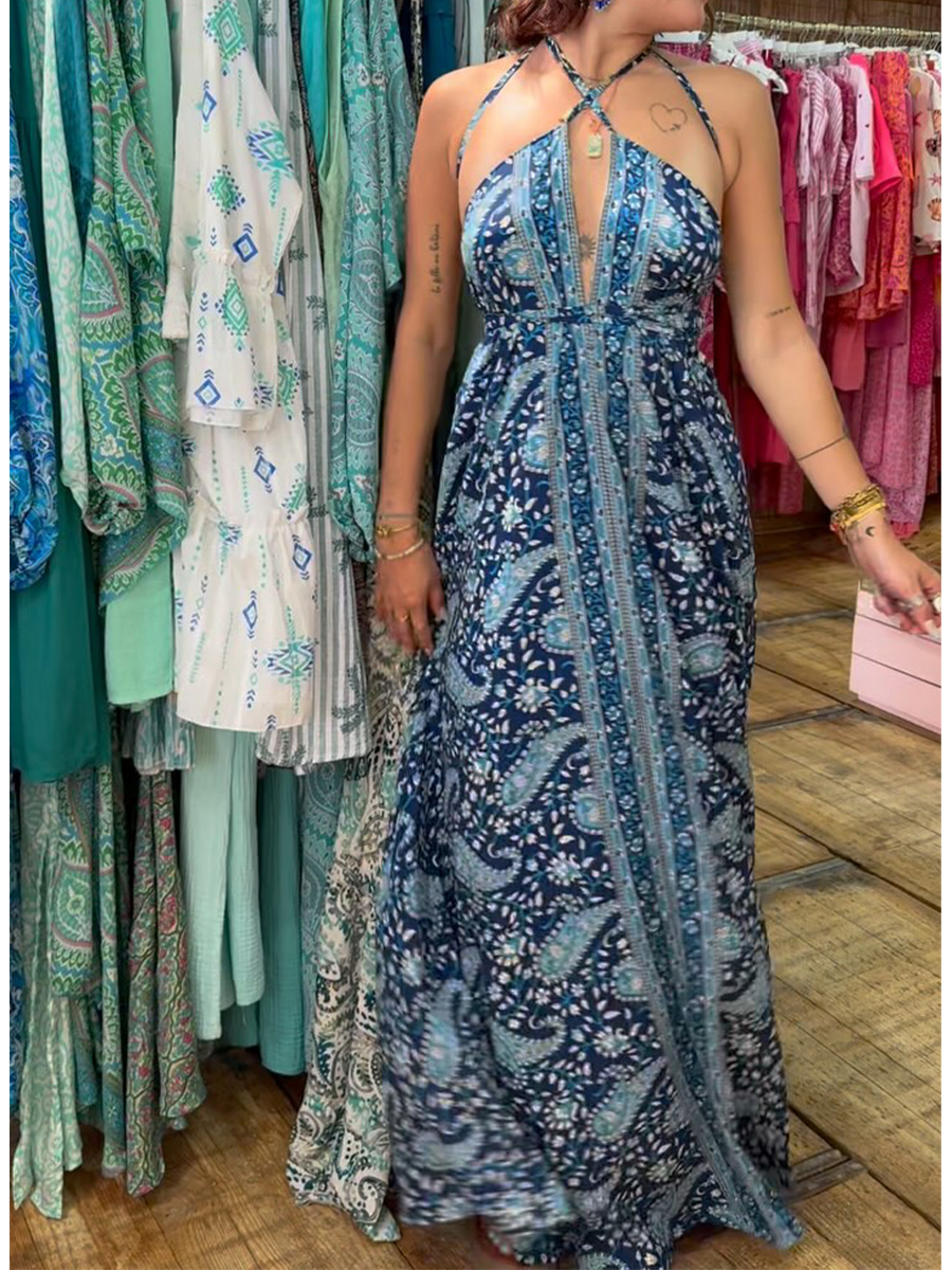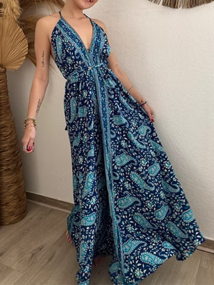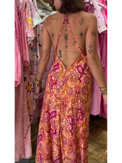 Women's Vintage Paisley Print Cotton Maxi Dress