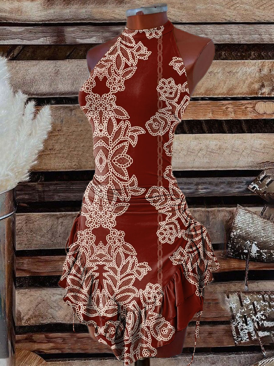 Women's Vintage Print Halter Neck Dress