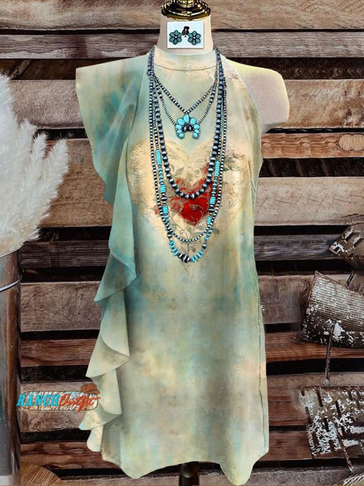 Women's Vintage Print V-Neck Button Pocket Cotton Dress