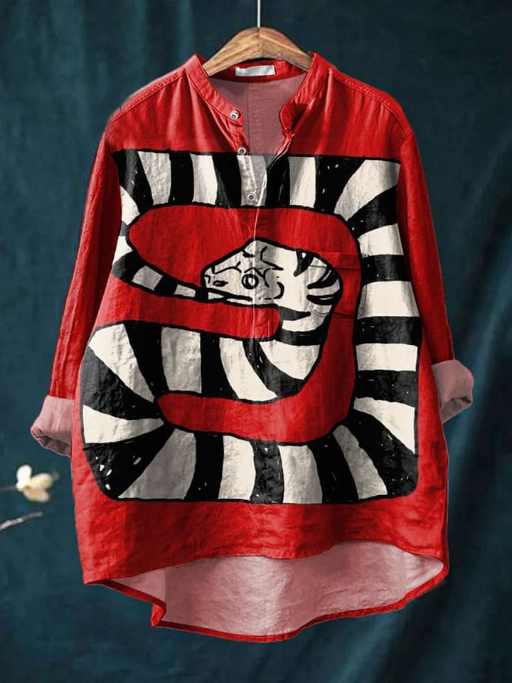 Women's Vintage Snake Art Print Casual Long Sleeve Comfortable Cotton Shirt