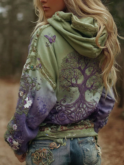 Women's Vintage Viking Tree Of Life Art Gradient Comfort Hoodie