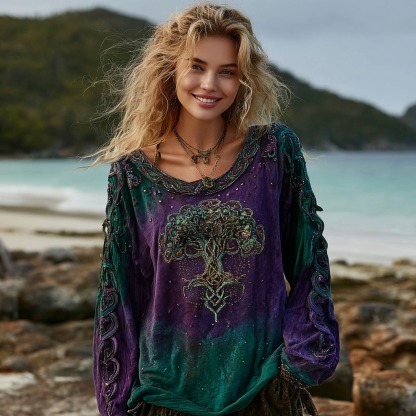 Women's Vintage Viking Tree Of Life Crew Neck Long Sleeve Shirt