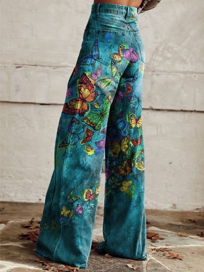 Women's Vintage Western Cowboy Wild Print Casual Wide Leg Pants