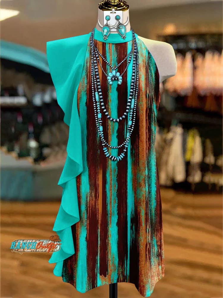 Women's Western Art Printed Sleeveless Ruffle Design Dress
