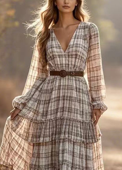 DIY Apricot Cinched Plaid Exra Large Hem Ankle Dress Spring